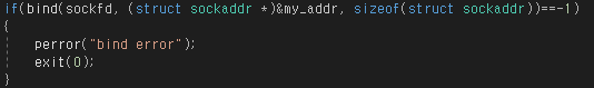 if(bind(sockfd, (struct sockaddr *)&my_addr, sizeof(struct sockaddr))==-1)