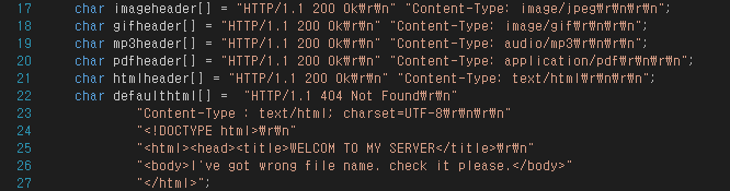 char defaulthtml[] = "HTTP/1.1 404 Not Found\r\n"