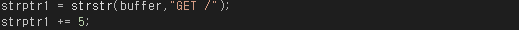 클라이언트가 보낸 값중 GET / 뒷부분의 위치를 받고(5는 "GET /"의 length입니다)