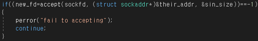 if((new_fd=accept(sockfd, (struct sockaddr*)&their_addr, &sin_size))==-1)