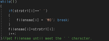 띄어쓰기 전까지의 파일이름을 받고 뒷부분을 \0으로 채웁니다.