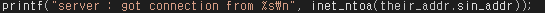 printf("server : got connection from %s\n", inet_ntoa(their_addr.sin_addr));