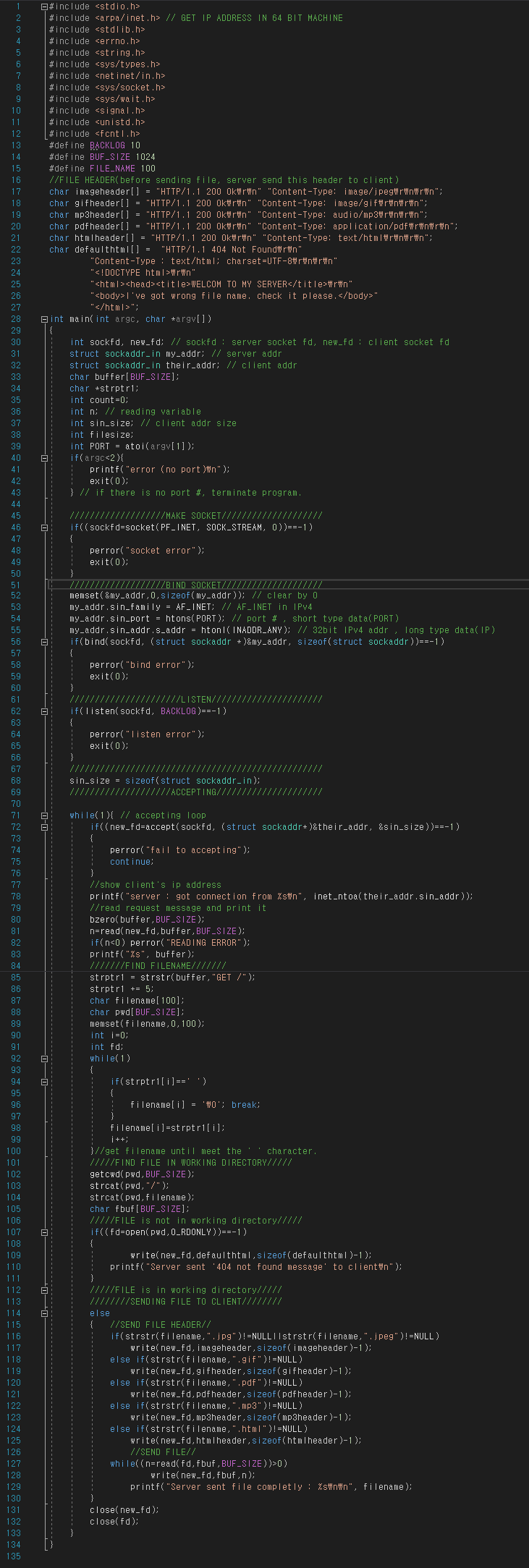 accepting loop에서 클라이언트의 요청이 들어오면 그에 맞게 response를 보냅니다.
