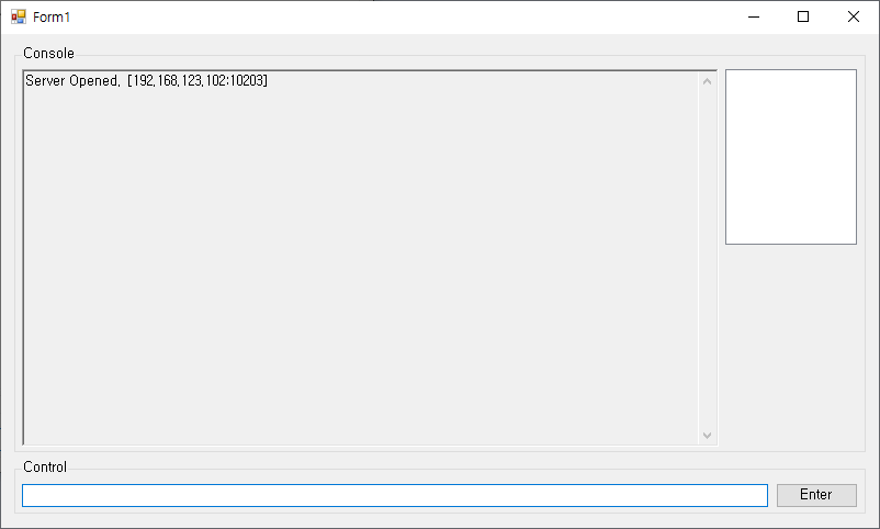 콘솔창을 RichTextBox로 만든 이유는 너무 길어지면 스크롤바를 추가하게끔 하기 위해서입니다. 코드 내 이름은 myConsole이고, multiline = true, readonly = true로 하시면 되겠습니다. 크기는 취향껏