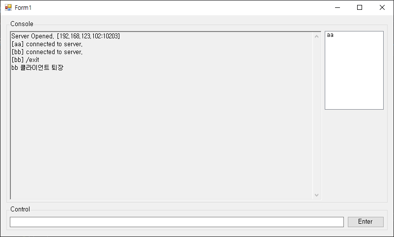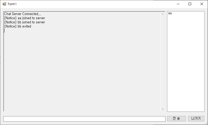 클라이언트는 이 메세지를 받으면 유저들을 본인들의 ListBox에 대입시킵니다.